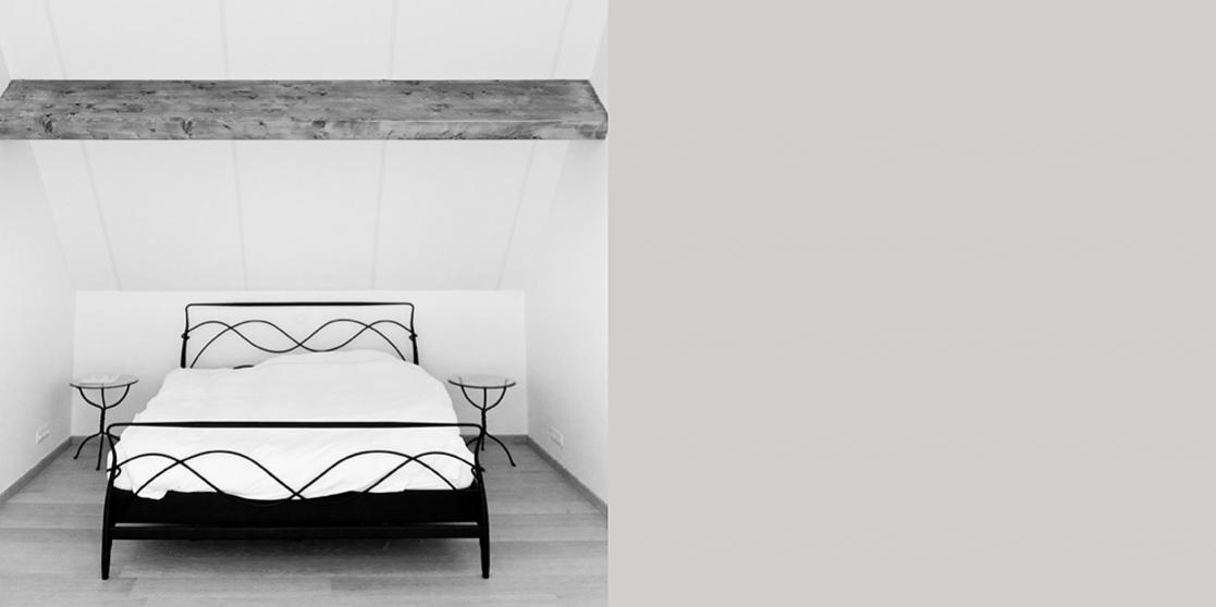 De voorziene vide tussen slaapkamer en bureauruimte werd uiteindelijk niet uitgevoerd. De bouwheer koos hier voor meer bruikbare oppervlakte in de slaapkamer en ook akoestisch werd zo geanticipeerd op een aantal moeilijkheden.